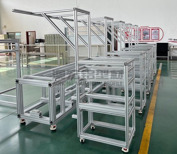 輸送線框架通常適用于工業生產和物流領域,用于支撐和定位輸送帶、滾筒、導向裝置和其他輸送線組件。這些框架可以適應各種形狀和尺寸的輸送線,滿足不同物料的處理需求。目前比較常見的有輸送設備鋁機架等框架。